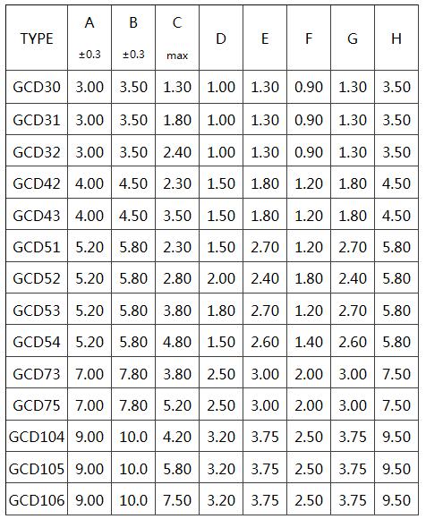 貼片電感GCD封裝尺寸: